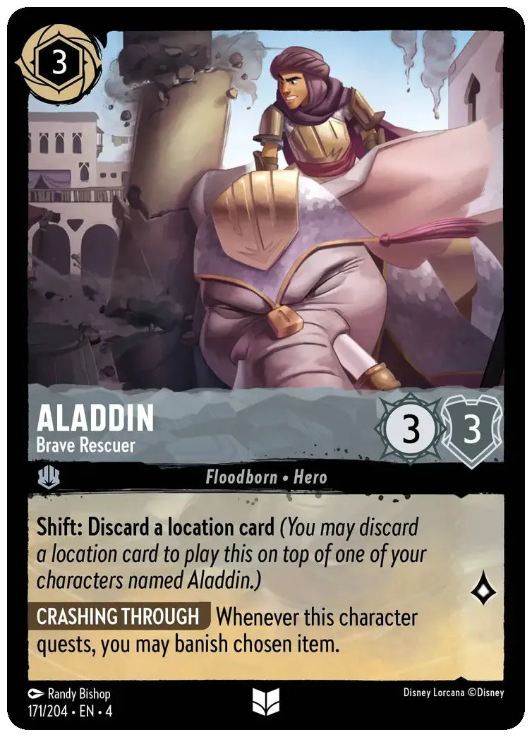 Shift: Discard a location card (You may discard a location card to play this on top of one of your characters named Aladdin.)