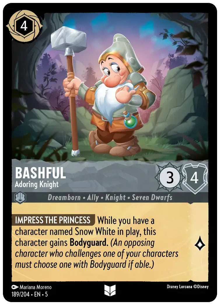 While you have a character named Snow White in play, this character gains Bodyguard. (An opposing character who challenges one of your characters must choose one with Bodyguard if able.)