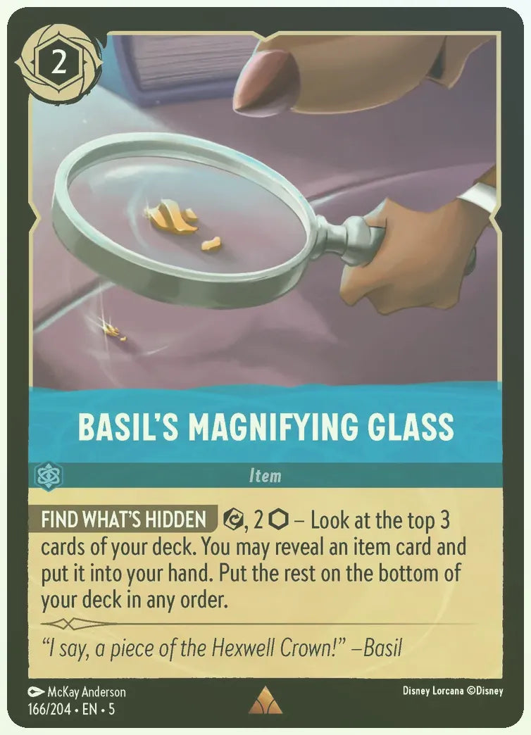 Exert, 2 ink – Look at the top 3 cards of your deck. You may reveal an item card and put it into your hand. Put the rest on the bottom of your deck in any order.