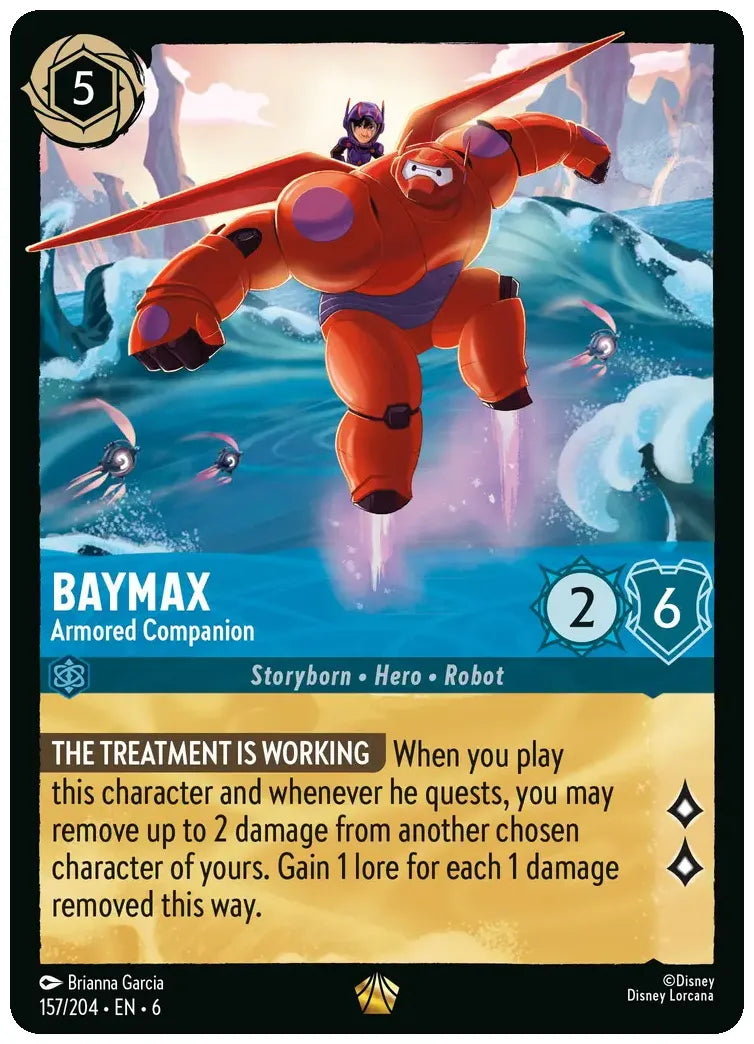 When you play this character and whenever he quests, you may remove up to 2 damage from another chosen character of yours. Gain 1 lore for each 1 damage removed this way