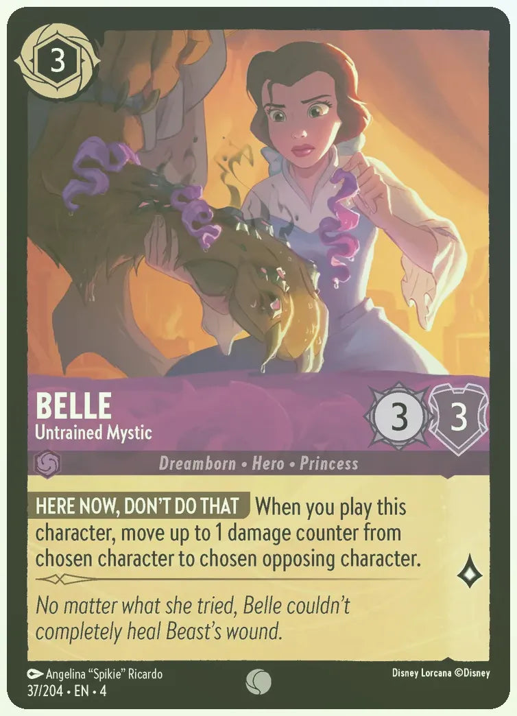 When you play this character, move up to 1 damage counter from chosen character to chosen opposing character.
