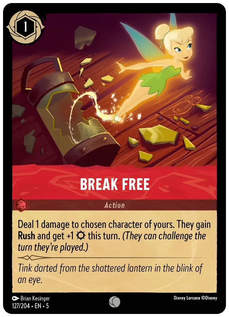 Deal 1 damage to chosen character of yours. They gain Rush and get +1 strength this turn. (They can challenge the turn they're played.)
