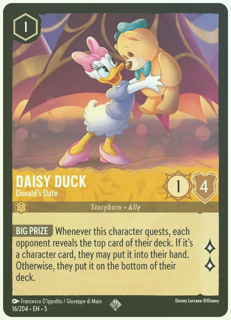 Whenever this character quests, each opponent reveals the top card of their deck. If it's a character card, they may put it in their hand. Otherwise, they put it on the bottom of their deck.