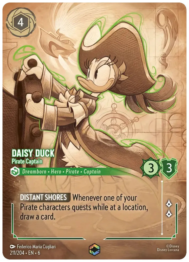 Whenever one of your Pirate characters quests while at a location, draw a card.