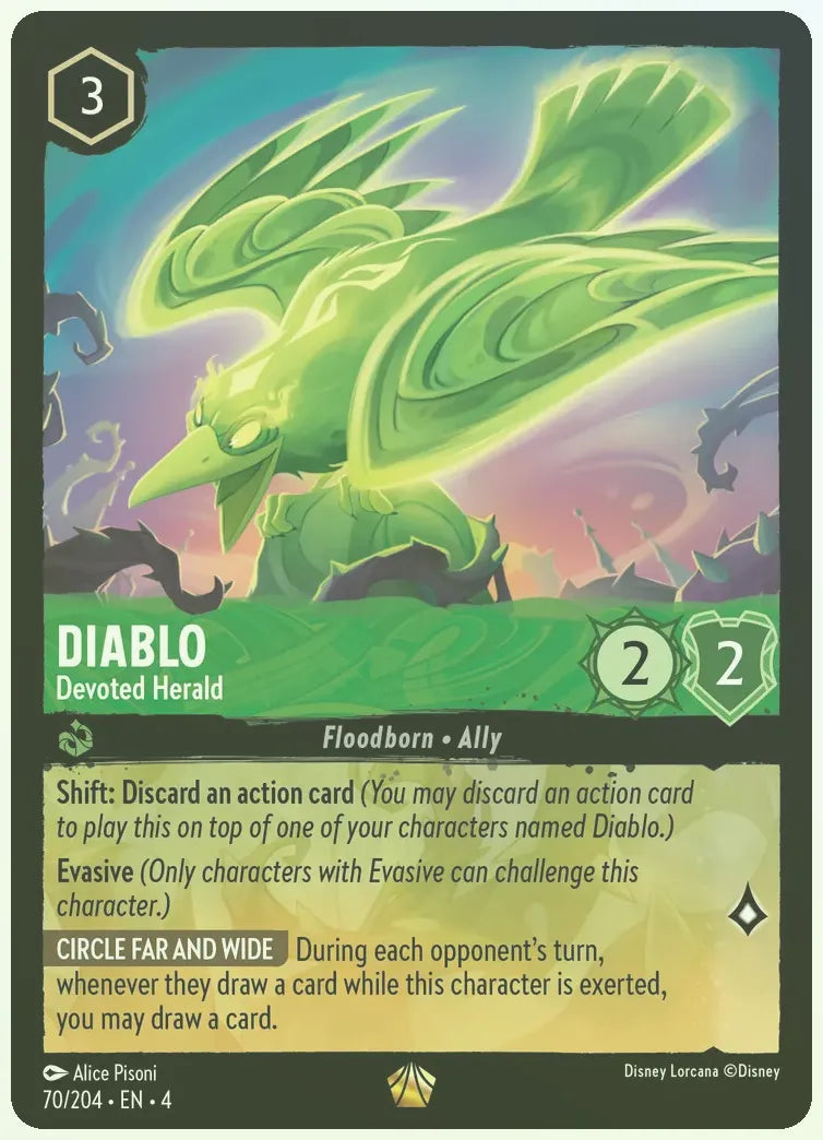 Shift: Discard an action card (You may discard an action card to play this on top of one of your characters named Diablo.)
