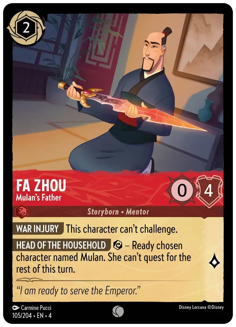 Exert - Ready a character of your choice called Mulan. They cannot quest for the rest of this turn.