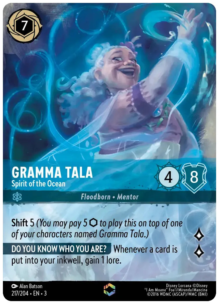 Shift 5 (You may pay 5 ink to play this on top of one of your characters named Gramma Tala.)