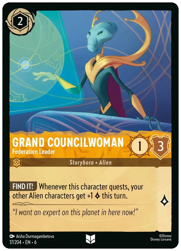 Whenever this character quests, your other Alien characters get +1 ? this turn.