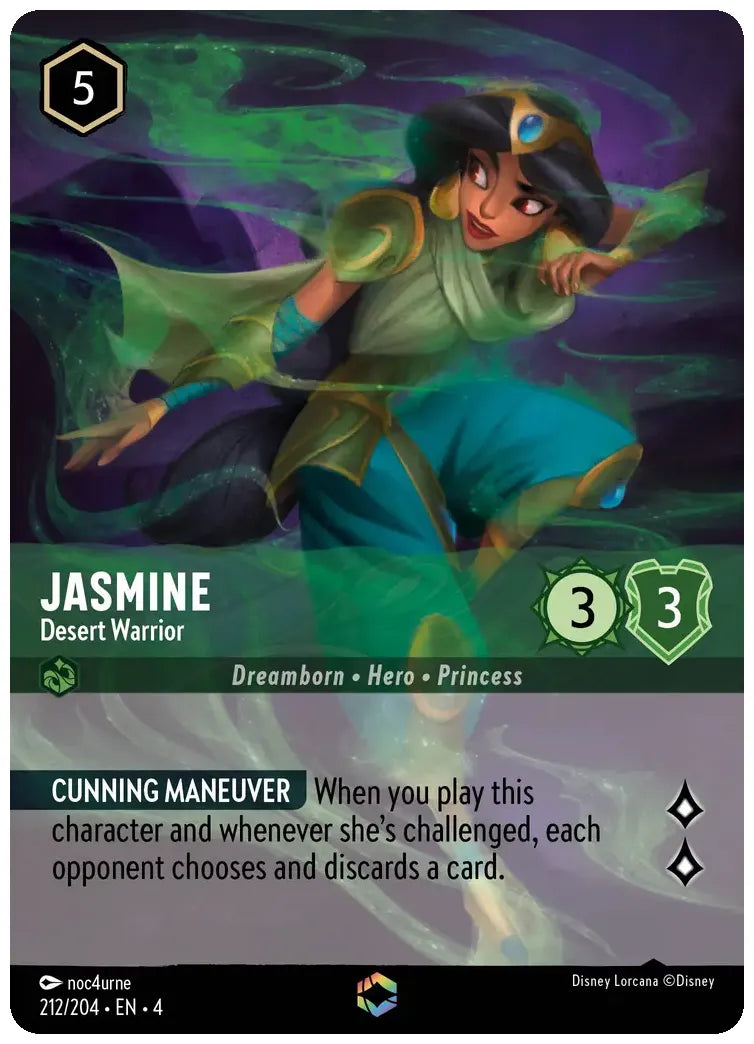When you play this character and each time she is challenged, each opponent chooses and discards a card.