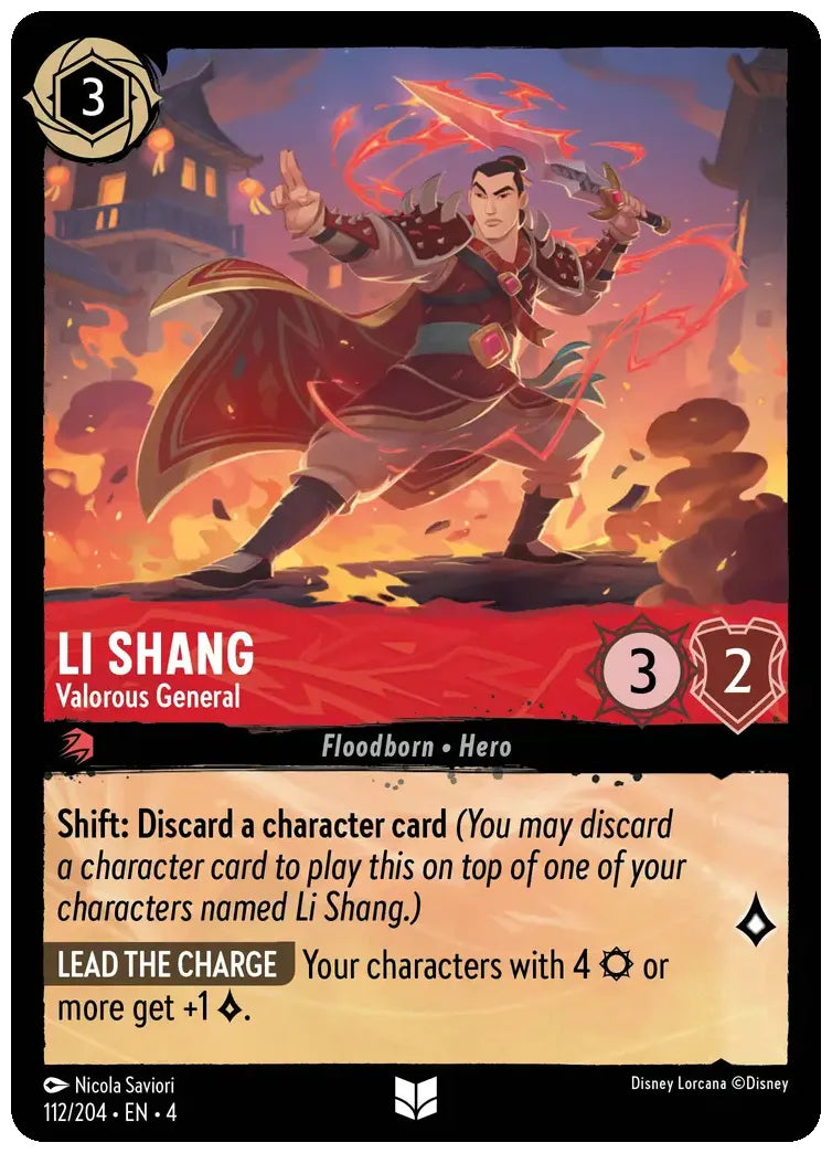 Shift: Discard a character card (You may discard a character card to play this on top of one of your characters named Li Shang.)