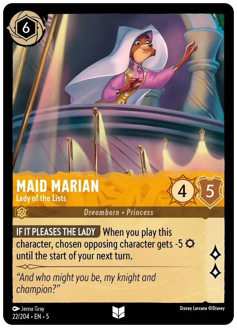 When you play this character, chosen opposing character gets -5 strength until the start of your next turn.