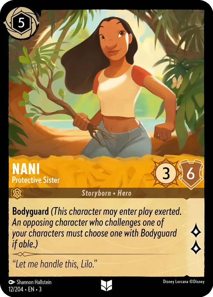 Bodyguard (This character may enter play exerted. An opposing character who challenges one of your characters must choose one with Bodyguard if able.)