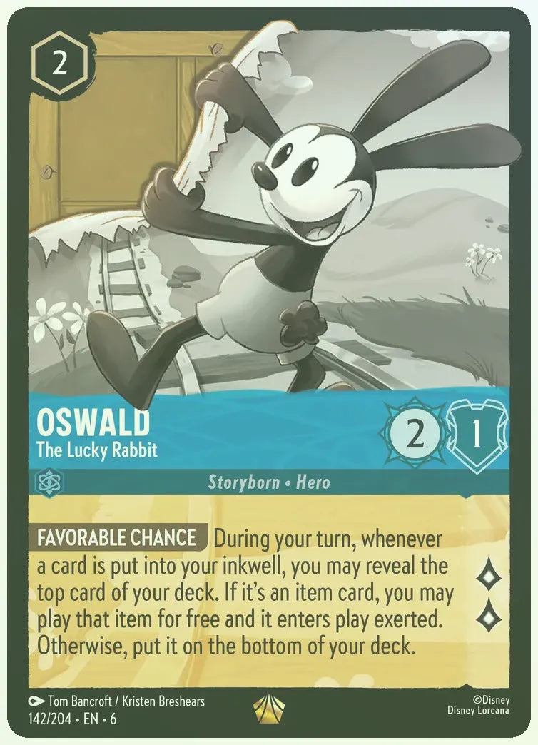 During your turn, whenever a card is put into your inkwell, you may reveal the top card of your deck. If it’s an item card, you may play that item for free and it enters play exerted. Otherwise, put it on the bottom of your deck.