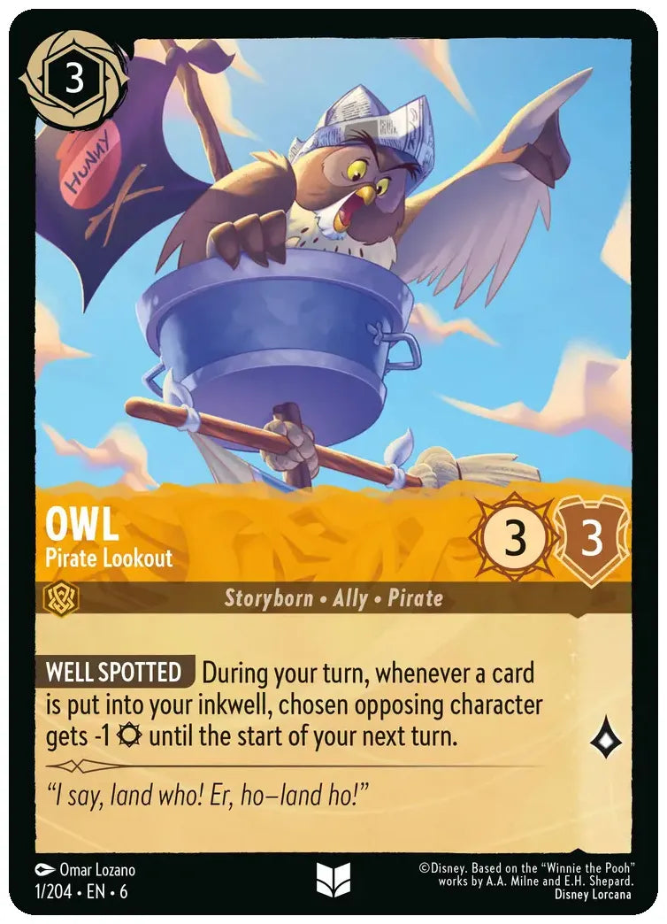During your turn, whenever a card is put into your inkwell, chosen opposing character gets -1 ? until the start of your next turn.