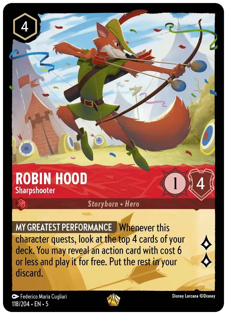 character quests, look at the top 4 cards of your deck. You may reveal an action card with cost 6 or less and play it for free. Put the rest in your discard.