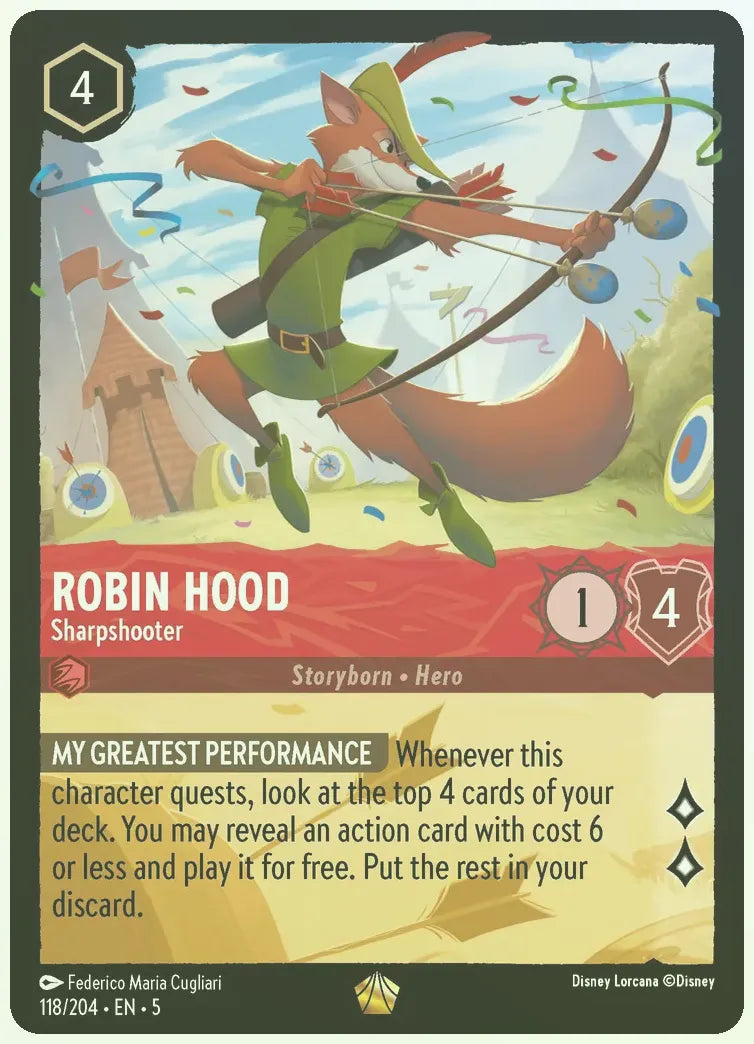 character quests, look at the top 4 cards of your deck. You may reveal an action card with cost 6 or less and play it for free. Put the rest in your discard.