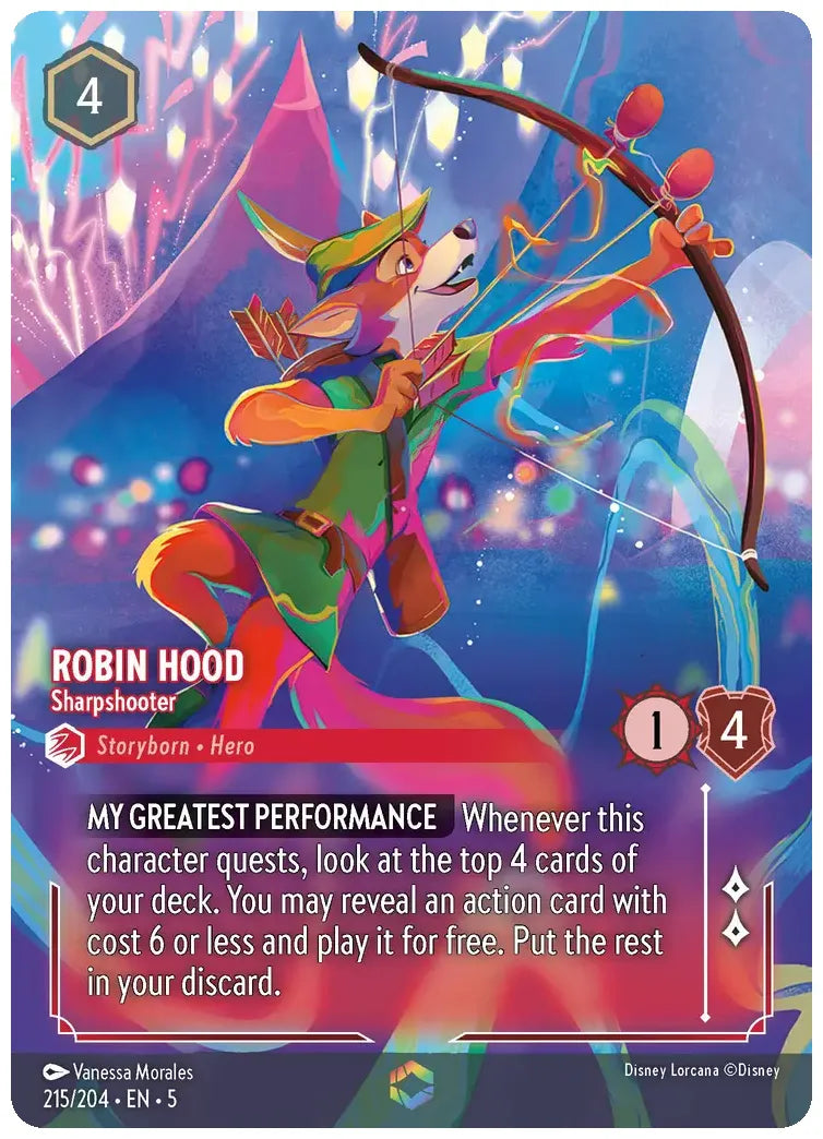 Whenever this character quests, look at the top 4 cards of your deck. You may reveal an action card with cost 6 or less and play it for free. Put the rest in your discard.