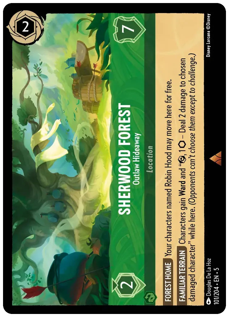 Characters gain Ward and "Exert, 1 ink – Deal 2 damage to chosen damaged character" while here. (Opponents can't choose them except to challenge.)