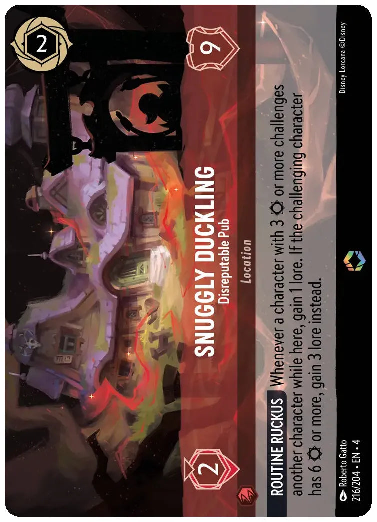 Whenever a character with 3 strength or more challenges another character while here, gain 1 lore. If the challenging character has 6 strength or more, gain 3 lore instead.
