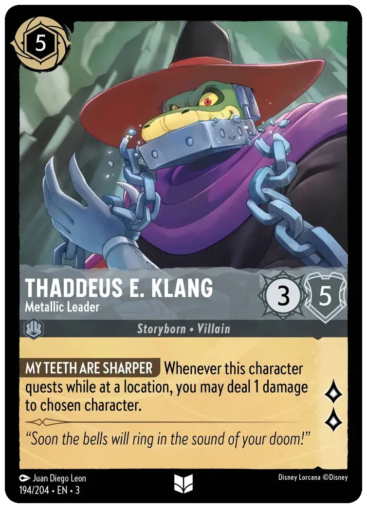 Whenever this character quests while at a location, you may deal 1 damage to chosen character.