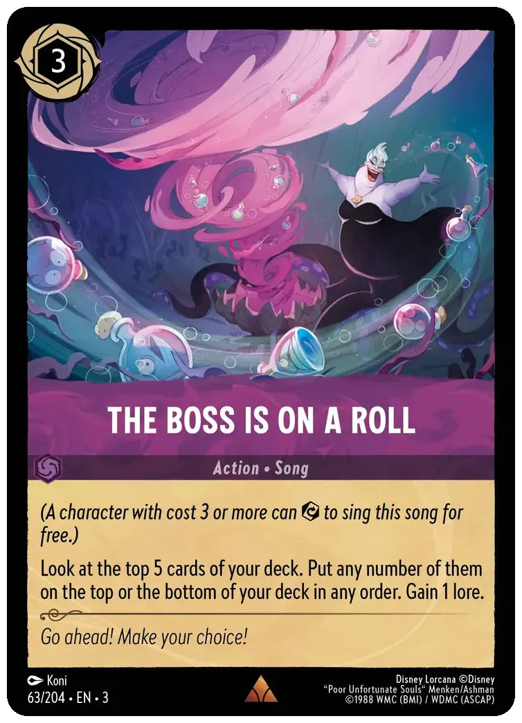 Look at the top 5 cards of your deck. Put any number of them on the top or the bottom of your deck in any order. Gain 1 lore.