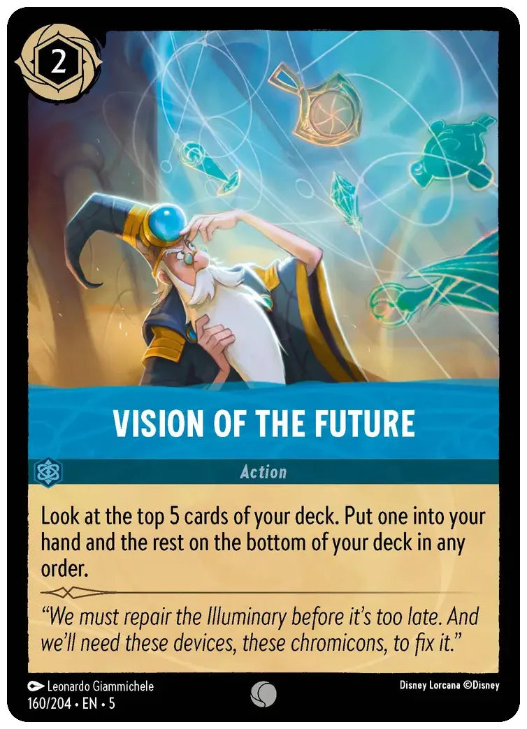 Look at the top 5 cards of your deck. Put one into your hand and the rest on the bottom of your deck in any order.