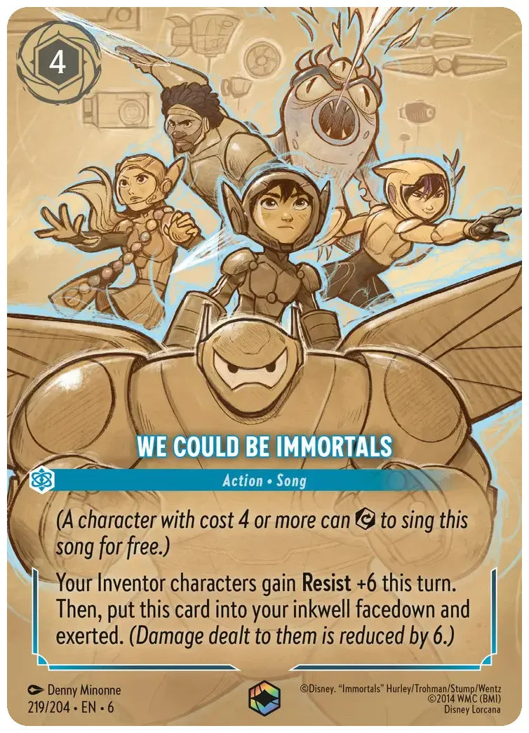 Your Inventor characters gain Resist +6 this turn. Then, put this card into your inkwell facedown and exerted. (Damage dealt to them is reduced by 6.)