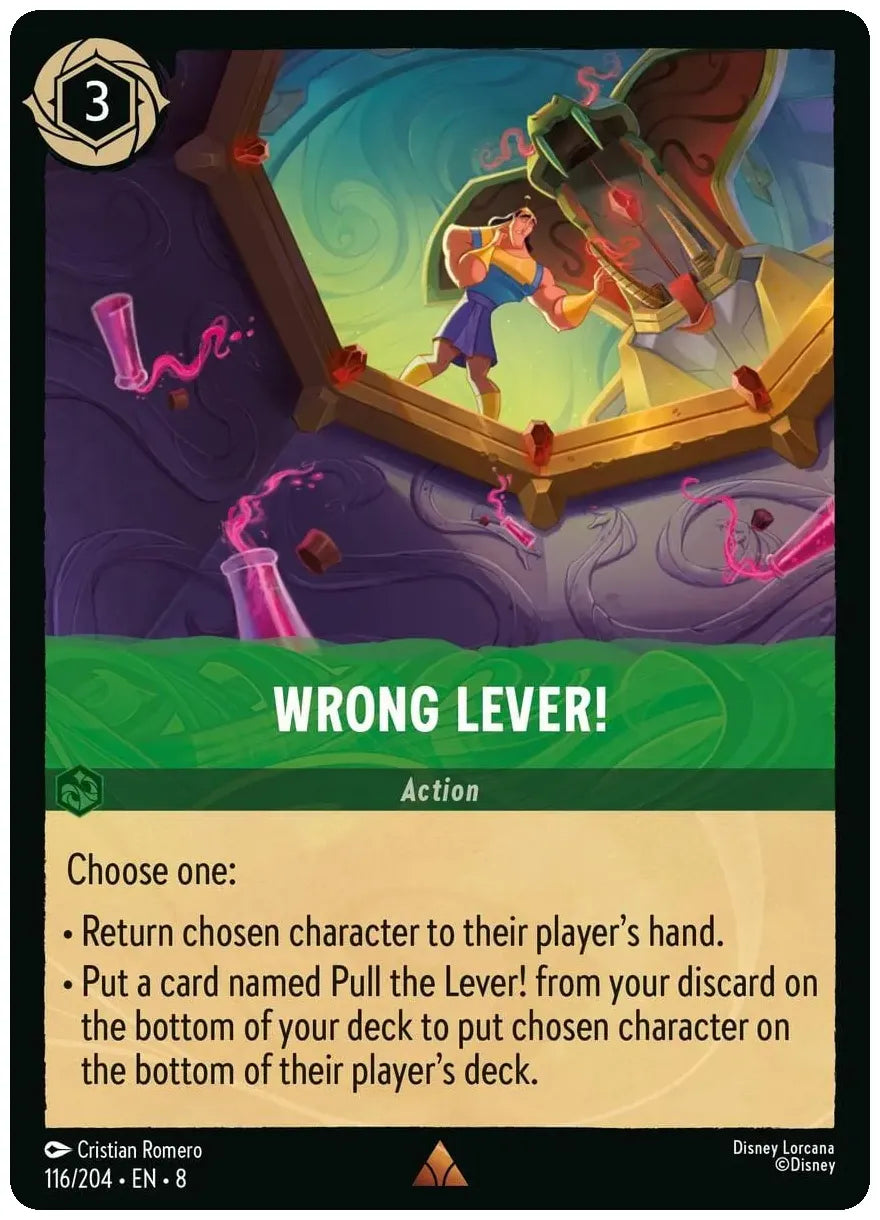 • Put a card named Pull the Lever! from your discard on the bottom of your deck to put chosen character on the bottom of their player’s deck.