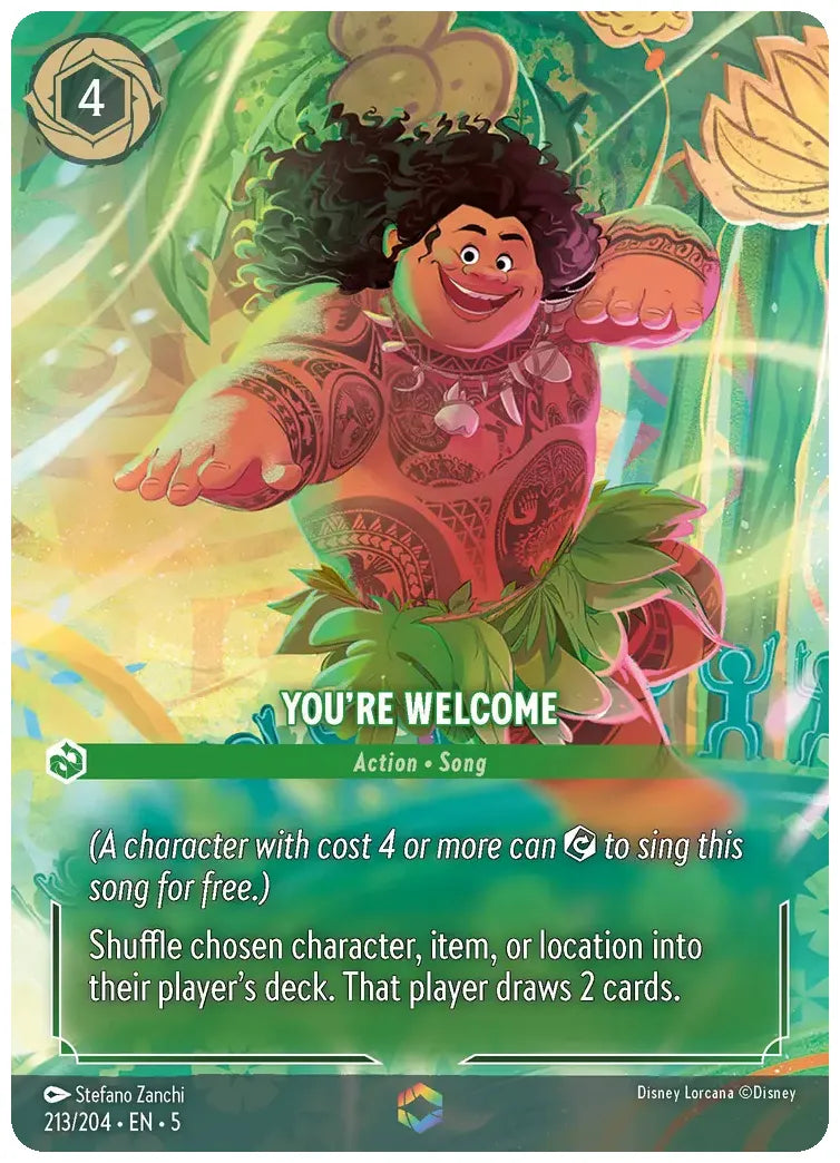 Shuffle chosen character, item, or location into their player's deck. That player draws 2 cards.