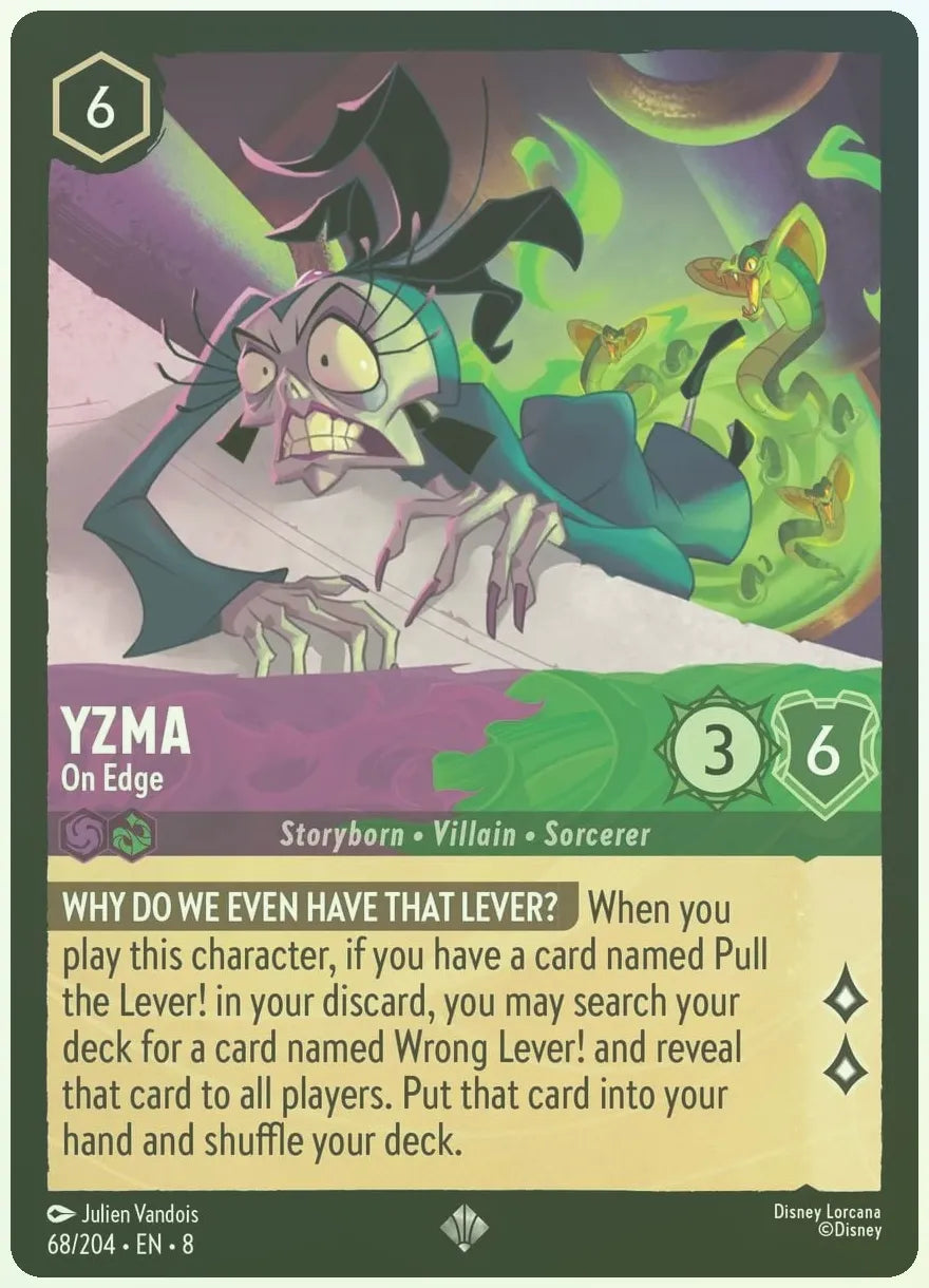 When you play this character, if you have a card named Pull the Lever! in your discard, you may search your deck for a card named Wrong Lever! and reveal that card to all players. Put that card into your hand and shuffle your deck.